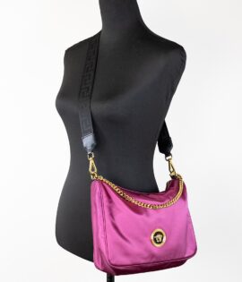 Versace Small Dahlia Nylon Fabric Medusa Pendant Crossbody Shoulder Purse Bag