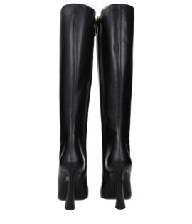 Versace Black Leather Logo Plaque High Heels Pumps Shoes