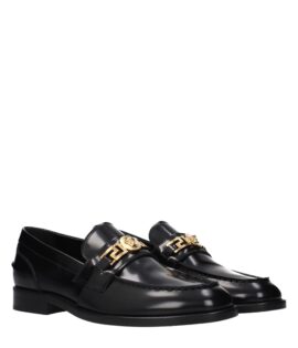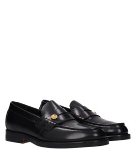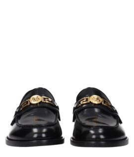 Versace Black Leather Slip-On Loafers