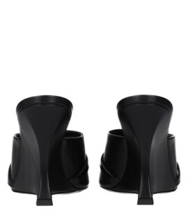 Versace Black Leather Wedge Sandals