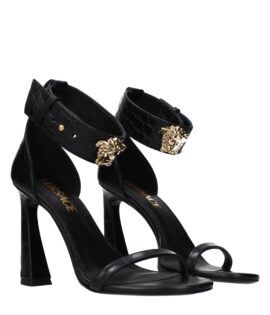 Versace Black Leather Stiletto Heel Sandals