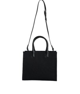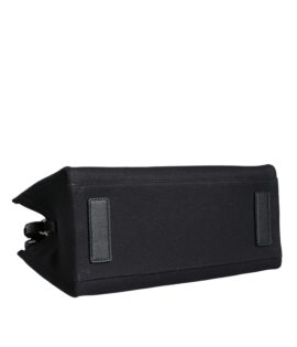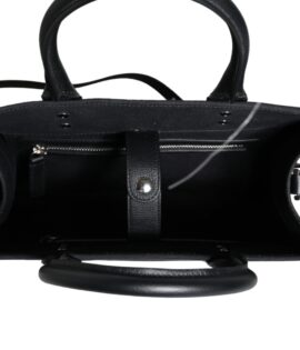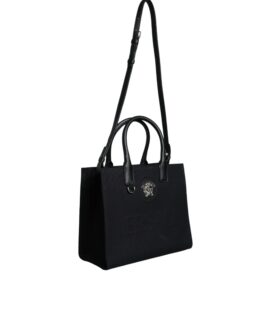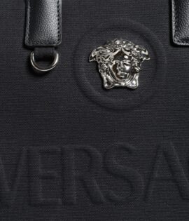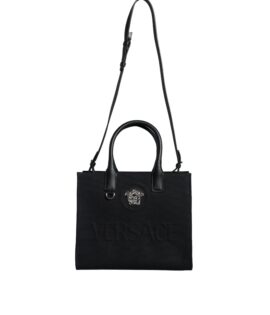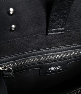 Versace Black Top Handle Canvas Leather Logo Crossbody Tote Bag