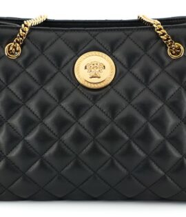 Versace Black Quilted Nappa Leather Medusa Tote Handbag