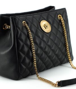 Versace Black Quilted Nappa Leather Shoulder Chain Strap Bag