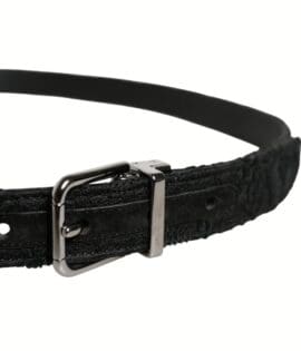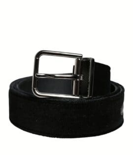 Dolce & Gabbana Black Classic Velvet Silver Tone Metal Buckle Belt