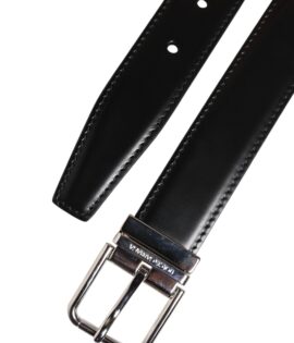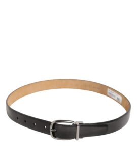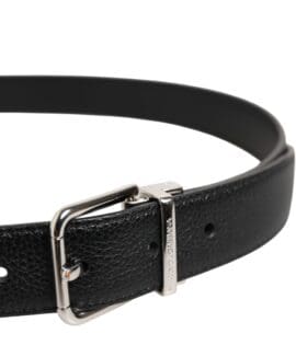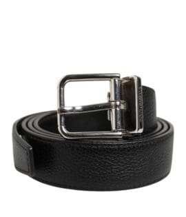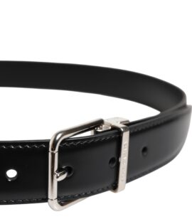Dolce & Gabbana Black Classic Leather Silver Tone Buckle Belt