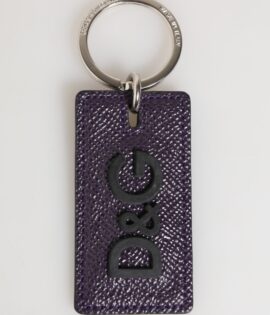 Dolce & Gabbana Violet Leather Logo Metal Ring Men Keychain Keyring