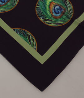 Dolce & Gabbana Black Peacock Feather DG Printed Square Handkerchief Scarf