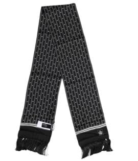 Dolce & Gabbana Black White Cotton DG Printed Cashmere Shawl Scarf