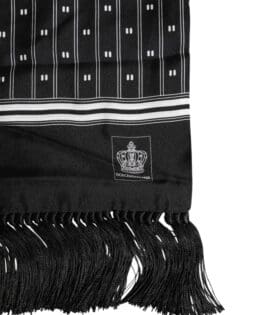 Dolce & Gabbana Black Silk Printed Fringes Men Foulard Scarf