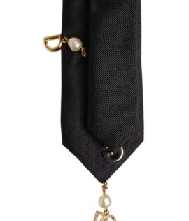 Dolce & Gabbana Black Logo Embellished Adjustable Necktie Tie
