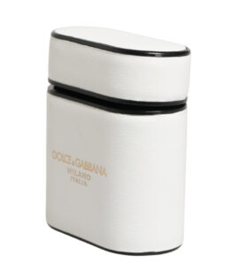 Dolce & Gabbana White Calf Leather Logo Print Flip Holder Airpods Case