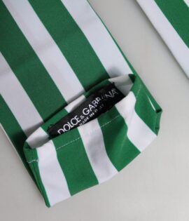 Dolce & Gabbana Green White Stripes Nylon Elbow Length Women Gloves