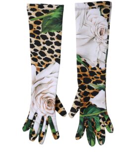 Dolce & Gabbana Multicolor Floral Leopard Elbow Length Women Gloves