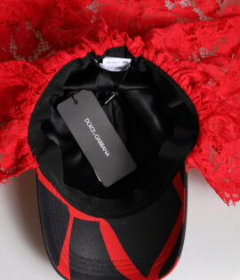 Dolce & Gabbana Red Black Lace Tulle Cotton Baseball Cap