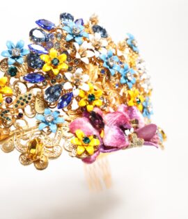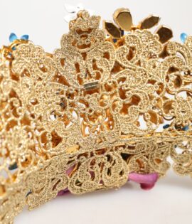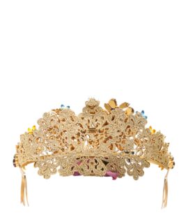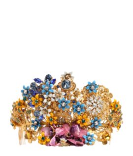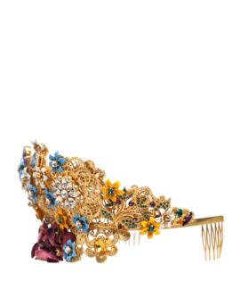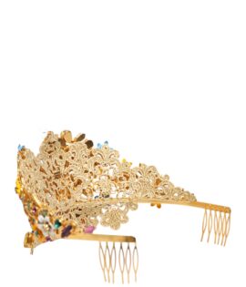 Dolce & Gabbana Gold Brass Crystal Floral Hortensia Crown Headband Tiara