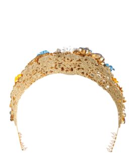 Dolce & Gabbana Diadem Headband Tiara White Rose Crystal Hair Gold