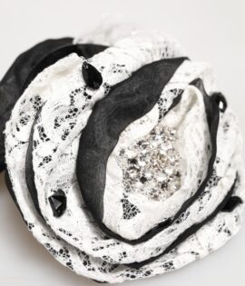 Dolce & Gabbana Black White Silk Floral Lace Crystal Accessory Hair Claw
