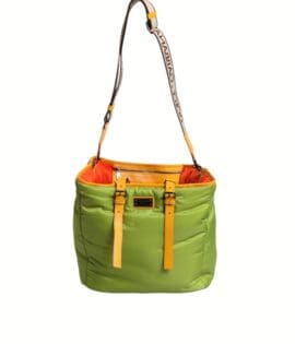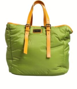 Dolce & Gabbana Green Nylon Padded Logo Plaque Tote Crossbody Bag