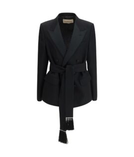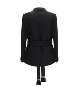 Valentino Double-breasted Virgin Wool Blazer with Tie Detail