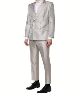 Dolce & Gabbana Light Gray Jacquard Silk Dotted 2 Piece Suit