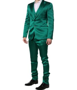Dolce & Gabbana Green Silk 3 Piece Single Breasted Suit