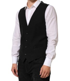 Dolce & Gabbana Black Cotton Waistcoat Dress Men Formal Vest
