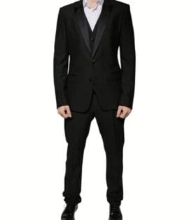 Dolce & Gabbana Black Wool 3 Piece Slim Fit Formal Men Suit