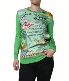 Dolce & Gabbana Green Silk Granita Al Limone Long Sleeves Sweater