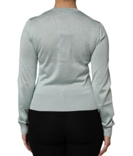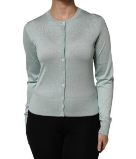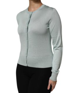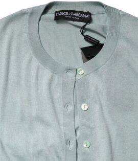 Dolce & Gabbana Light Green Silk Button Down Cardigan Sweater