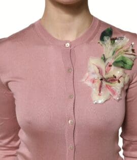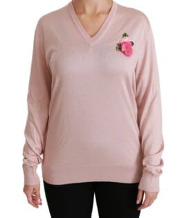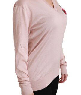 Dolce & Gabbana Pink Floral Embellished Pullover Silk Sweater
