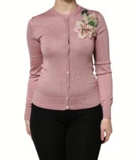 Dolce & Gabbana Pink Silk Knit Button Down Cardigan Sweater