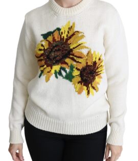 Dolce & Gabbana White Floral Wool Pullover Sunflower Sweater