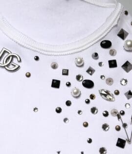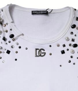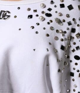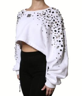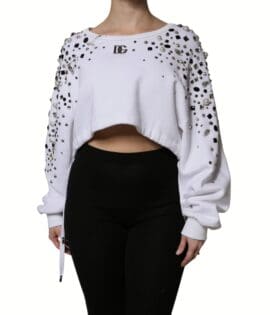 Dolce & Gabbana White Embellished Long Sleeve Cropped Sweater