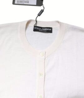 Dolce & Gabbana White Cashmere Crew Neck Top Cardigan Sweater