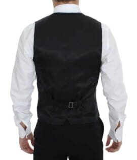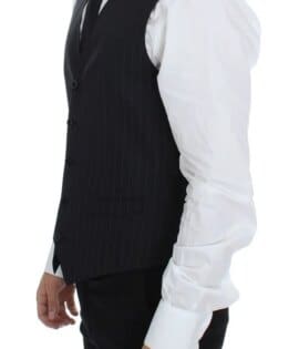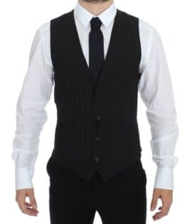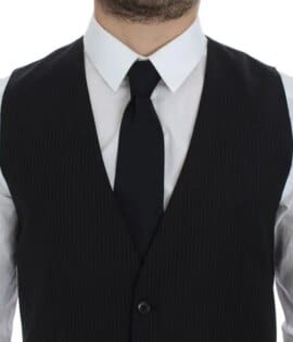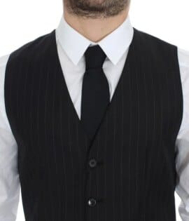 Dolce & Gabbana Black Striped Wool Single Breasted Vest