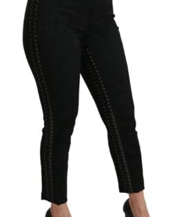 Dolce & Gabbana Black Brocade Polyester Skinny Dress Pants