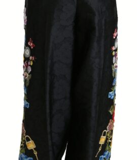 Dolce & Gabbana Black Brocade Floral Sequined Beaded Pants