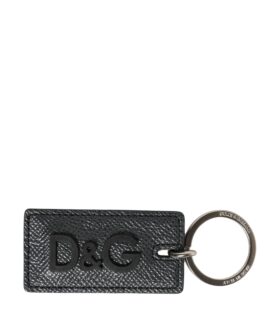 Dolce & Gabbana Black Calf Leather D&G Logo Metal Ring Keyring Keychain