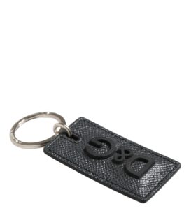 Dolce & Gabbana Black DG Logo Leather Silver Metal Keyring Men Keychain