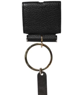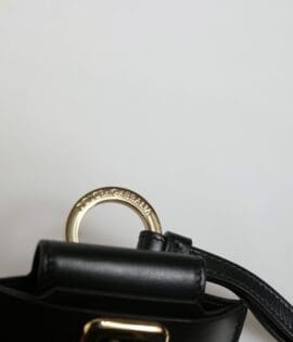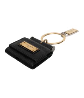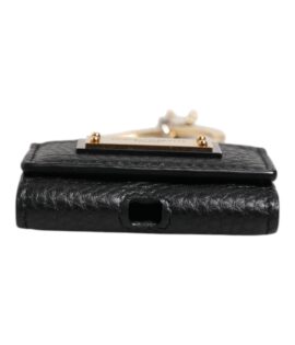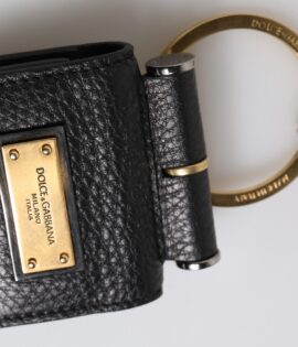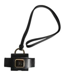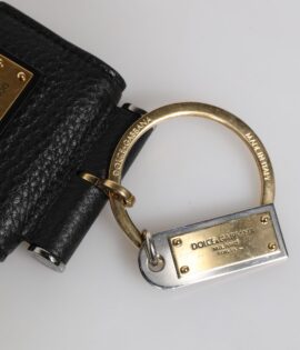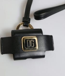 Dolce & Gabbana Black Leather Strap Gold Metal Logo Plaque Airpods Case