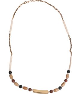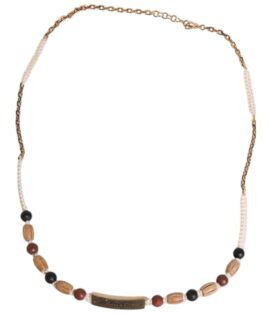 Dolce & Gabbana Black Gold Wooden Beaded Logo Pendant Necklace