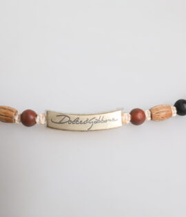Dolce & Gabbana Black Gold Wooden Beaded Logo Pendant