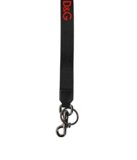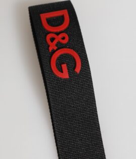 Dolce & Gabbana Black Red DG Logo Polyester Silver Men Keychain Keyring