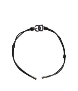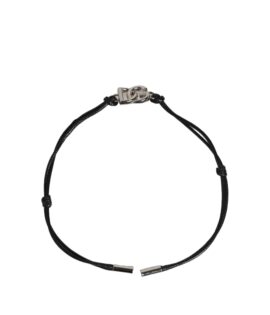 Dolce & Gabbana Black Polyester Cord Silver Tone DG Logo Charm Bracelet