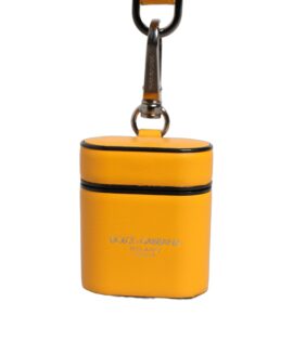 Dolce & Gabbana Case Yellow Calf Leather Logo Flip Holder Strap Airpods