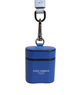 Dolce & Gabbana Case Blue Calf Leather Logo Flip Holder Strap Airpods