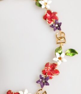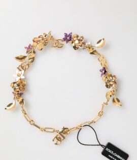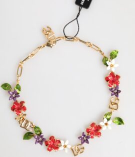 Dolce & Gabbana Gold Brass Logo Detail Floral Fashion Jewelry Necklace