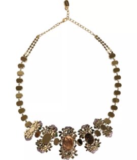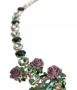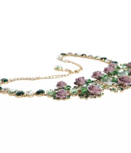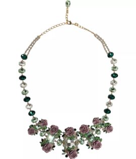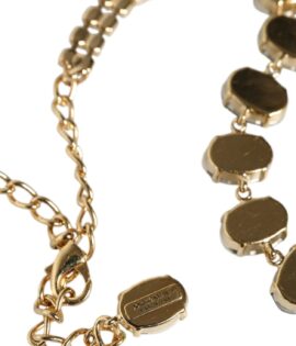 Dolce & Gabbana Gold Brass Link Chain Rose Petal Crystal Necklace