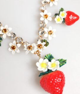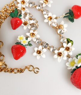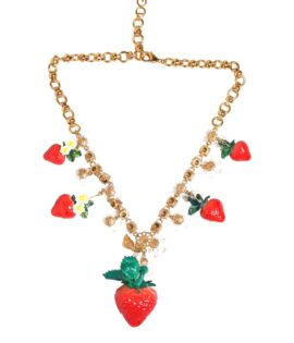 Dolce & Gabbana Gold Brass FRUIT Pendants Flowers Crystal Logo Necklace